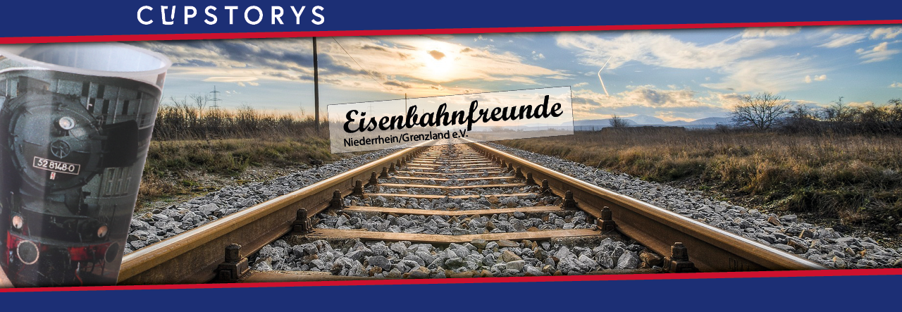 Der dekorative selbst designte "Dampflok-Mehrwegbecher" von Cupstorys darf natürlich nicht fehlen und ist ein beliebtes Souvenir bei den Fahrgästen und anderen Eisenbahnfreunden.